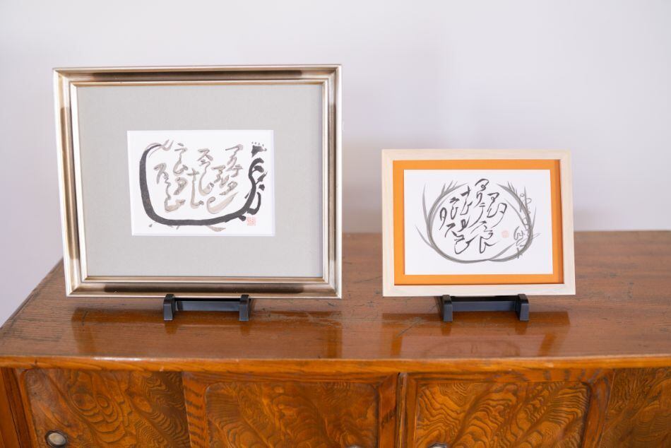 完全の音霊(おとだま)「アリテアルタスラーム ナームヒラームタスワーム」が龍泰文字で書かれています。龍泰文字(りゅうたいもじ)は龍神の姿を象った書です。